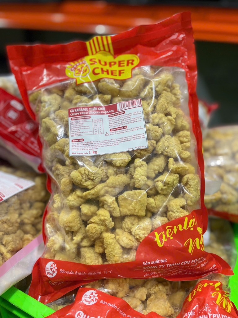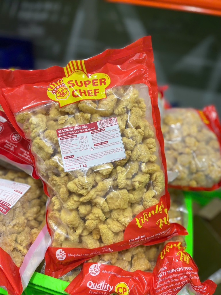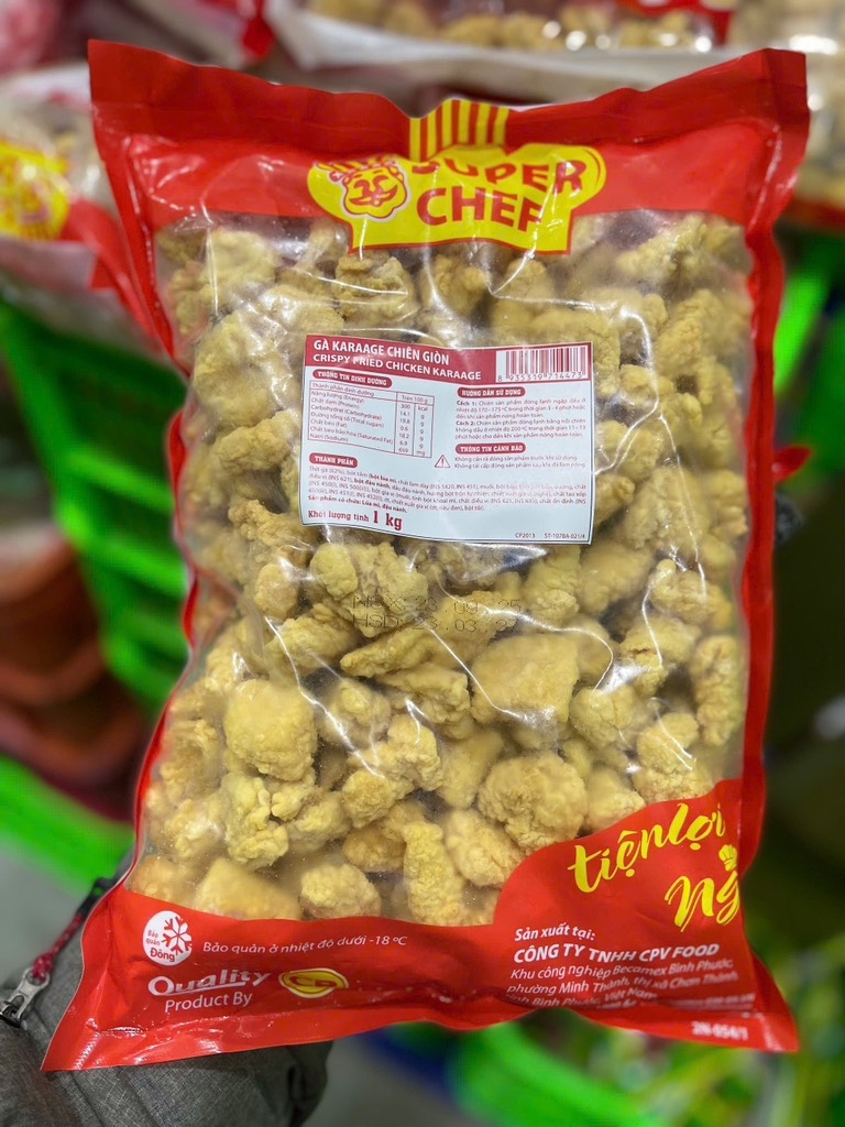 .Là thực phẩm làm sẵn an toàn, chất lượng của đến từ thương hiệu thực phẩm C.P. Gà Karrage Chiên Giòn C.P được làm từ thịt gà tươi ngon, lớp vỏ giòn tan, cùng lớp vỏ giòn giòn, thích hợp cho mọi nhà, mọi lứa tuổi. Sản phẩm có thể ăn kèm với cơm hoặc ăn chơi đều rất ngon.