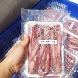 – Mực ghim trứng là đặc sản nổi tiếng của của Đảo Phú Quý, thuộc vùng biển Phan Thiết. Mực ghim trứng có ngoại hình tương đồng với mực ống, tuy nhiên thân mực ghim có màu trắng đỏ, cuộn tròn như cây ghim, đuôi mực dài, nhọn, tai, râu mực ngắn và đầu mực ít thịt. – Sau khi, ngư dân đánh bắt mực ghim trứng sẽ cấp đông ngay lập tức tại tàu nền đảm bảo mực luôn tươi ngọt, giữ nguyên vị ngọt và hàm lượng chất dinh dưỡng của mực tươi.- Mực ghim trứng có tỷ lệ trứng theo mùa, thường giao động trong khoảng từ 70 – 80%. Mực ghim trứng là loại hải sản có phần thịt dai giòn, thêm phần trứng tạo độ béo bùi ngon miệng và có thể chế biến thành nhiều món ăn.- Phù hợp các món hấp, xào, nướng, lẩu… Size 11-15 con 1kg Size 9-12 con 1kg